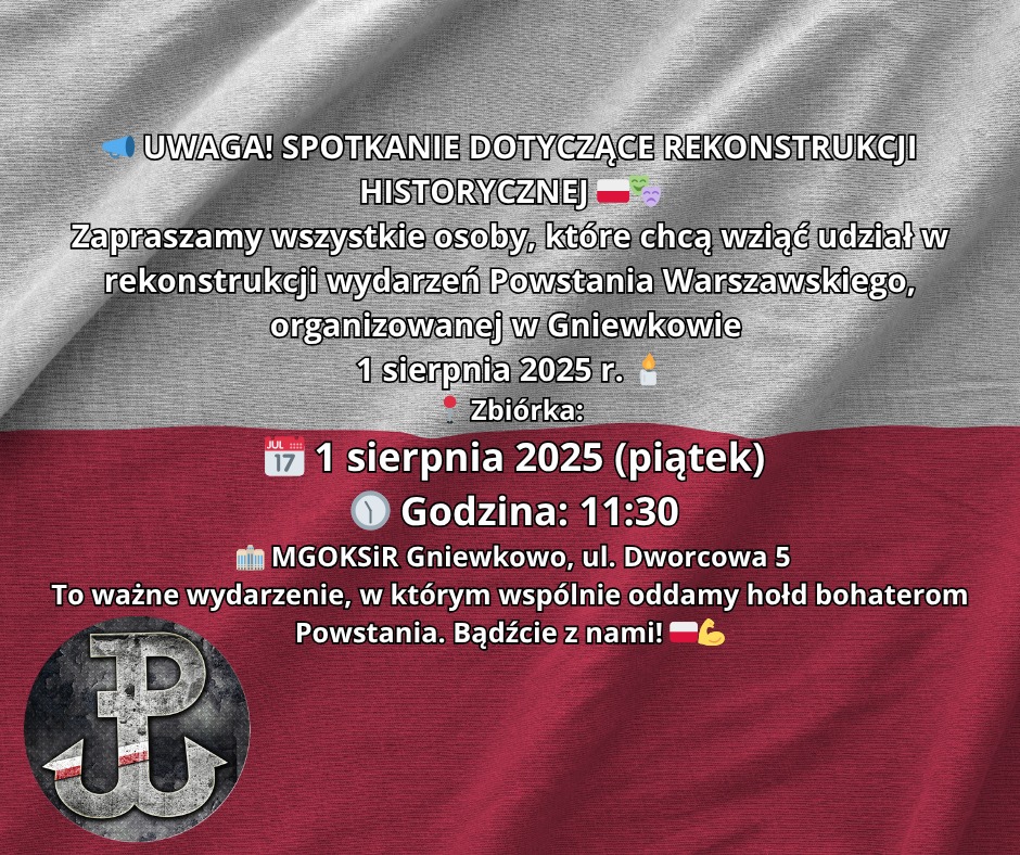 Spotkanie osób, które chcą wziąć udział w rekonstrukcji historycznej upamiętniającej bohaterów Powstania Warszawskiego.