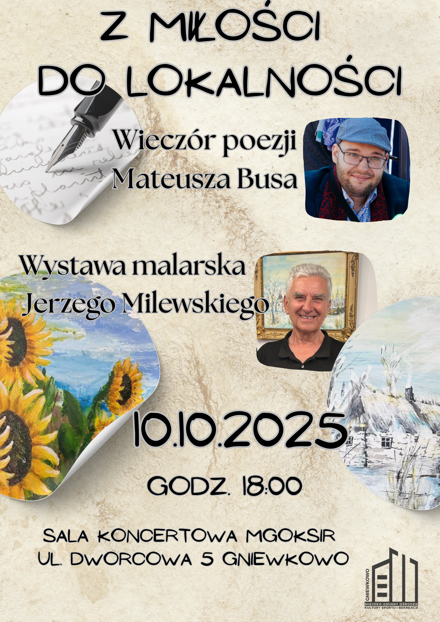 W piątkowy wieczór 10 października w sali koncertowej MGOKSiR, swoje artystyczne spojrzenie na otaczającą nas rzeczywistość zaprezentują: Jerzy Milewski i Mateusz Bus,